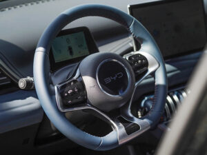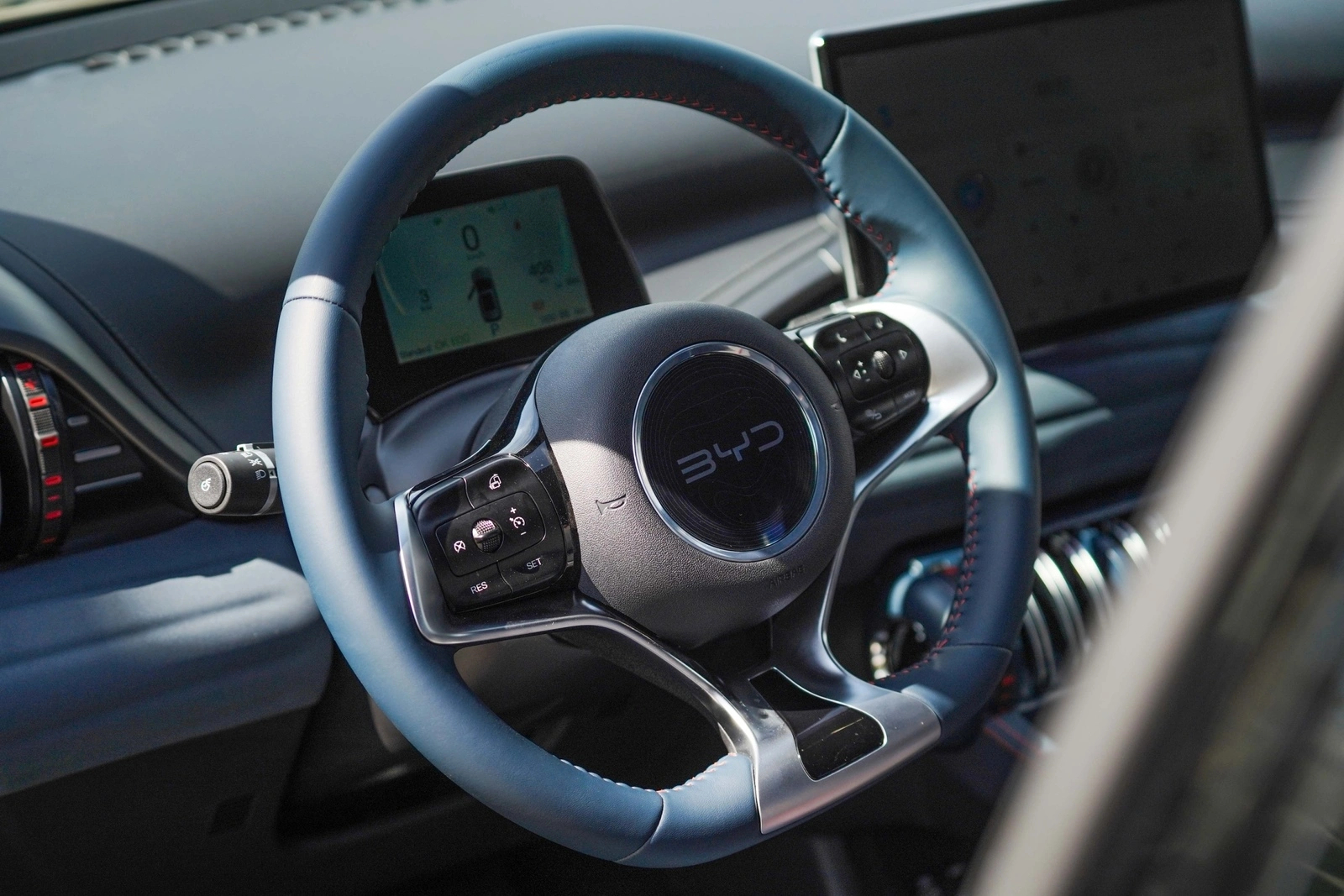 Không gian nội thất của BYD Atto 3 được thiết kế rộng rãi và tiện nghi, mang lại cảm giác thoải mái cho cả người lái và hành khách. Ghế ngồi bọc da cao cấp, có khả năng điều chỉnh điện và tích hợp chức năng sưởi ấm. Bảng điều khiển trung tâm được trang bị màn hình cảm ứng lớn, hỗ trợ kết nối Apple CarPlay và Android Auto, giúp người dùng dễ dàng truy cập các tính năng giải trí và điều hướng. Hệ thống âm thanh cao cấp và các tiện ích hiện đại như điều hòa tự động, cửa sổ trời toàn cảnh cũng là những điểm nhấn đáng chú ý trong khoang nội thất.
