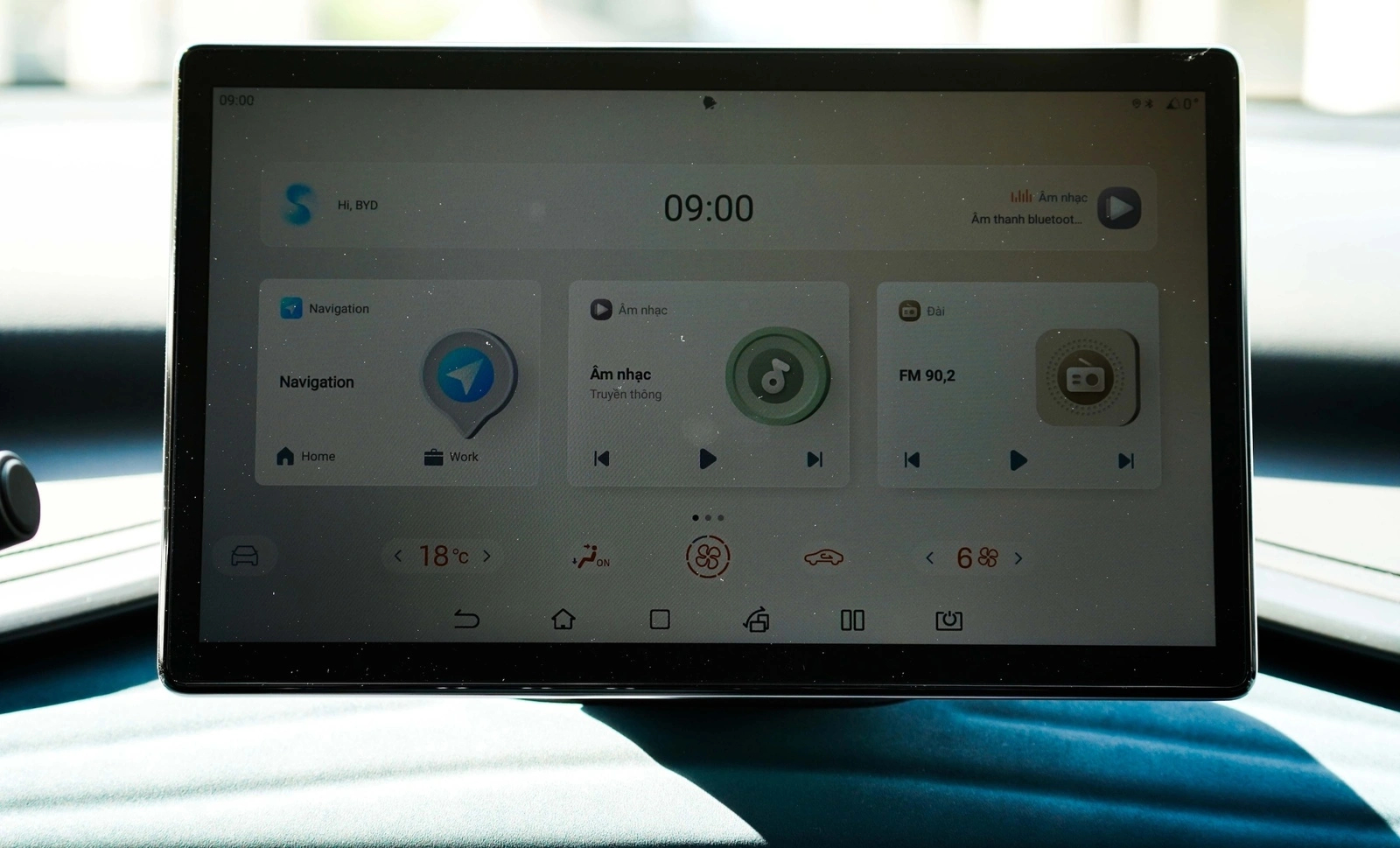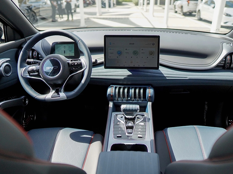 Khác biệt của chiếc xe đến từ thương hiệu BYD là màn hình giải trí ở khu vực táp-lô có thể tuỳ chỉnh xoay ngang/dọc bằng nút bấm có kích thước 12,8 – 15,6 inch. Điều này sẽ mang đến những sự mới mẻ cho người dùng khi trải nghiệm xe, không bị nhàm chán.