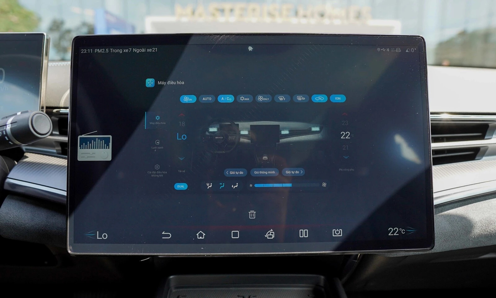 Khác biệt của chiếc xe đến từ thương hiệu BYD là màn hình giải trí ở khu vực táp-lô có thể tuỳ chỉnh xoay ngang/dọc bằng nút bấm có kích thước 15,6 inch. Điều này sẽ mang đến những sự mới mẻ cho người dùng khi trải nghiệm xe, không bị nhàm chán.